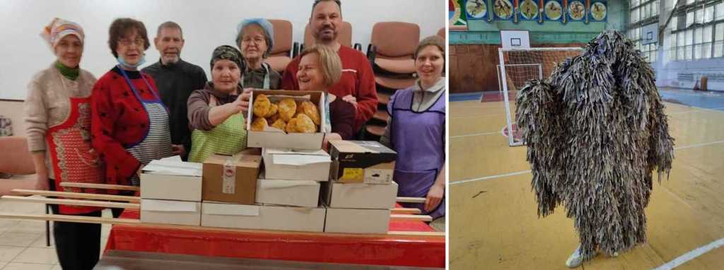I don’t take many photos now, it’s forbidden to post the photos of places, views of our cities and photos of soldiers. But I can share some photos of our church, of our cooks making pies for soldiers and some photos of working at camouflage covering at the local defense center.