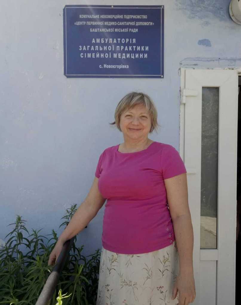 This village is called Novogorovka. In the photo, I am standing near a sign with the name “Family Medicine Outpatient Clinic.”