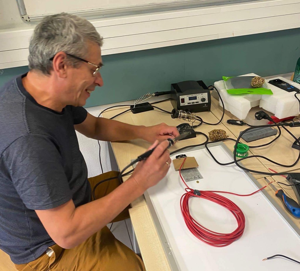 They are assembling portable solar panels for Ukraine. The batteries that will make it possible to charge phones and lamps where people stay without electricity.