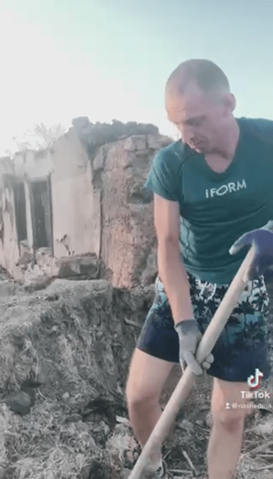 Our area was bombed a lot last week and many places suffered destructions and deaths. In village Mayaki, which is also close to our town, 65 private buildings were destroyed. In one of the photos you can see a man working on the place of the ruined house of his mother. There is the video where he professes his faith and praises the Lord. It’s unbelievable but his mother was able to survive in the ruined building we can see in the background. In another photo we can see a two-year old child in the village looking at what is left of her house.