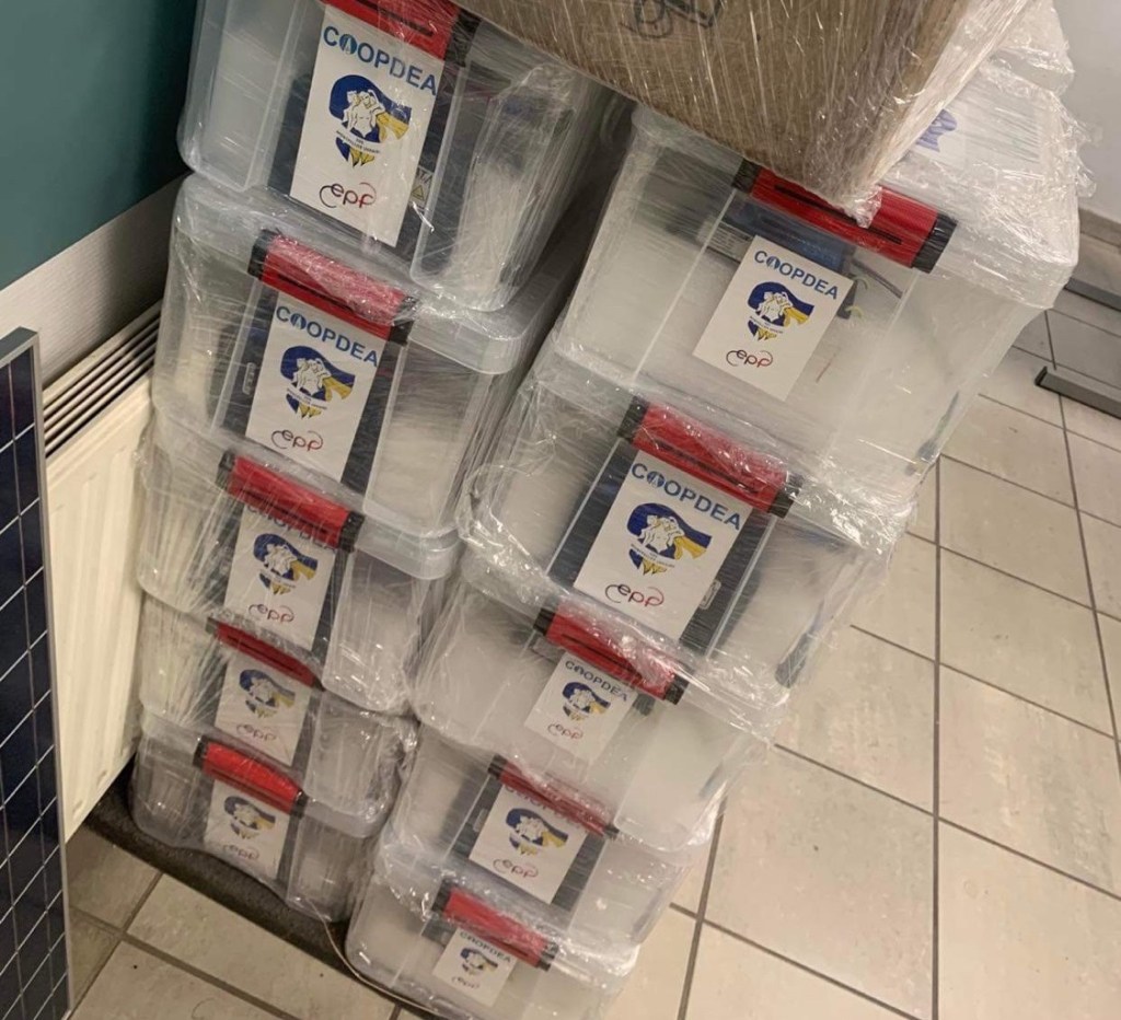 There is some news from our counselors Vxxxx and Axxx, who are in France now. Besides the work with the refugees there, they volunteer at small manufacturing where they assemble solar batteries which they send to our soldiers.