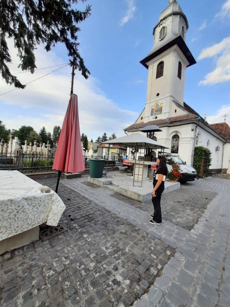 Katya explored different districts of Brasov and yesterday we found all four objects: a factory, a church , a cemetery and a military base, and we spotted the house opposite the military base. We think that we found the house where my grandparents might have lived long ago but it must have changed since then.