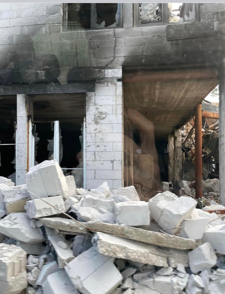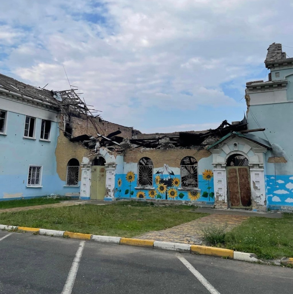 The road towards these towns from further west was fascinating. Just like everywhere in the country, there were military checkpoints along the way. In western Ukraine, all the street signs are visible. Along this road, signs had been intentionally removed, painted over, or otherwise obstructed. The idea was to prevent any Russian navigators from orienting themselves by way of street signs. The closer you get to Kyiv, the more damage you can see to buildings and other structures along the way as well.
