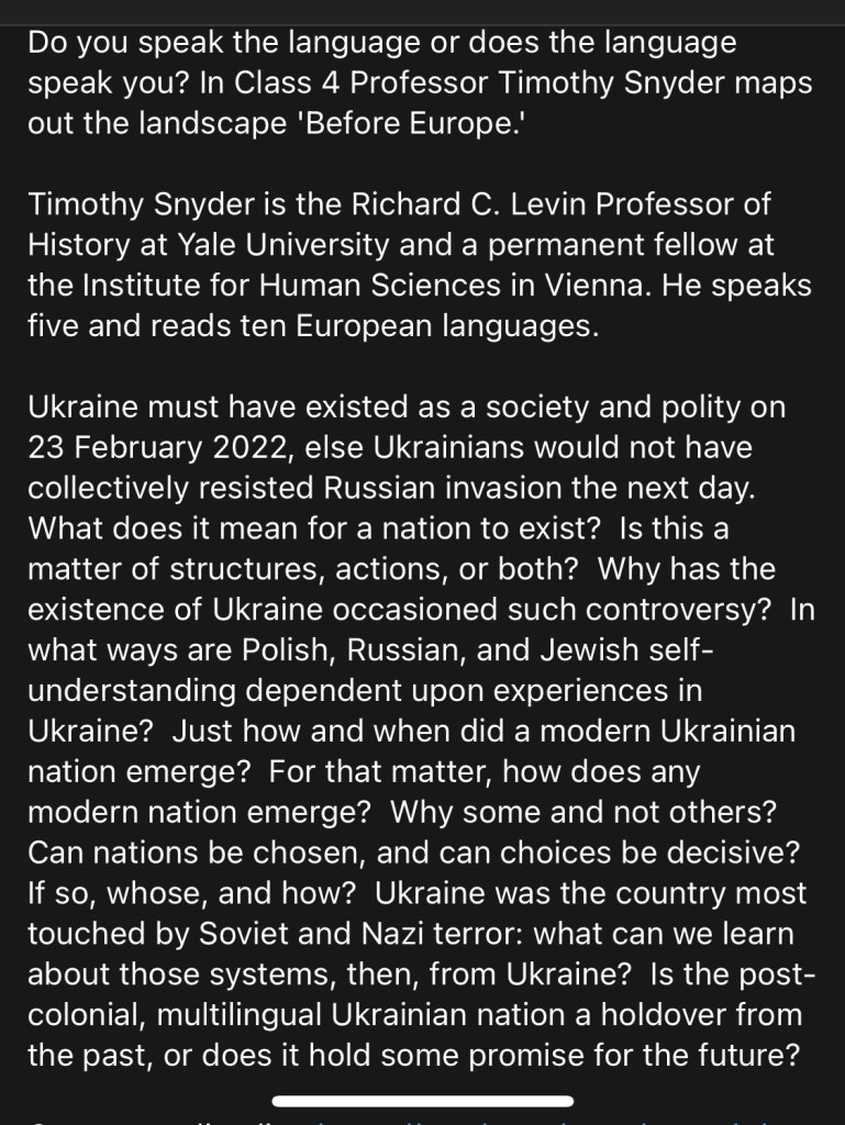 Timothy Snyder: The Making of Modern Ukraine. Class 4: Before Europe