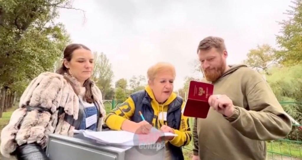 There are all kinds of reports out of the occupied territories about how this referendum is happening. Almost always, the reports include the fact that armed russian soldiers are at polling places. But there are other reports of mobile voting units, like in the picture below, that are accompanied by armed russian soldiers who are going door-to-door and forcing people to vote at gunpoint.