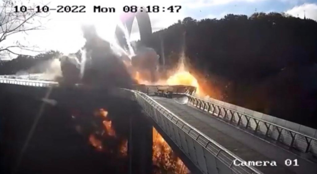 So what did russia spend half a billion dollars destroying? Playgrounds, universities, parks, the building that houses the German consulate, apartment buildings, and civilian infrastructure like power plants and water heating facilities. In the picture above, you can see a pedestrian bridge with absolutely zero military value. I walked across that bridge one month ago while in Kyiv. That explosion occurred about 500 feet from where I used to work (no, not a top-secret military facility… a concert hall) and it was damaged in the blast. This is just terrorism, plain and simple. At least 11 people are dead and 89 are injured. There were also over 100 miners trapped underground near the city of Kryviy Rih as a result of the attacks.