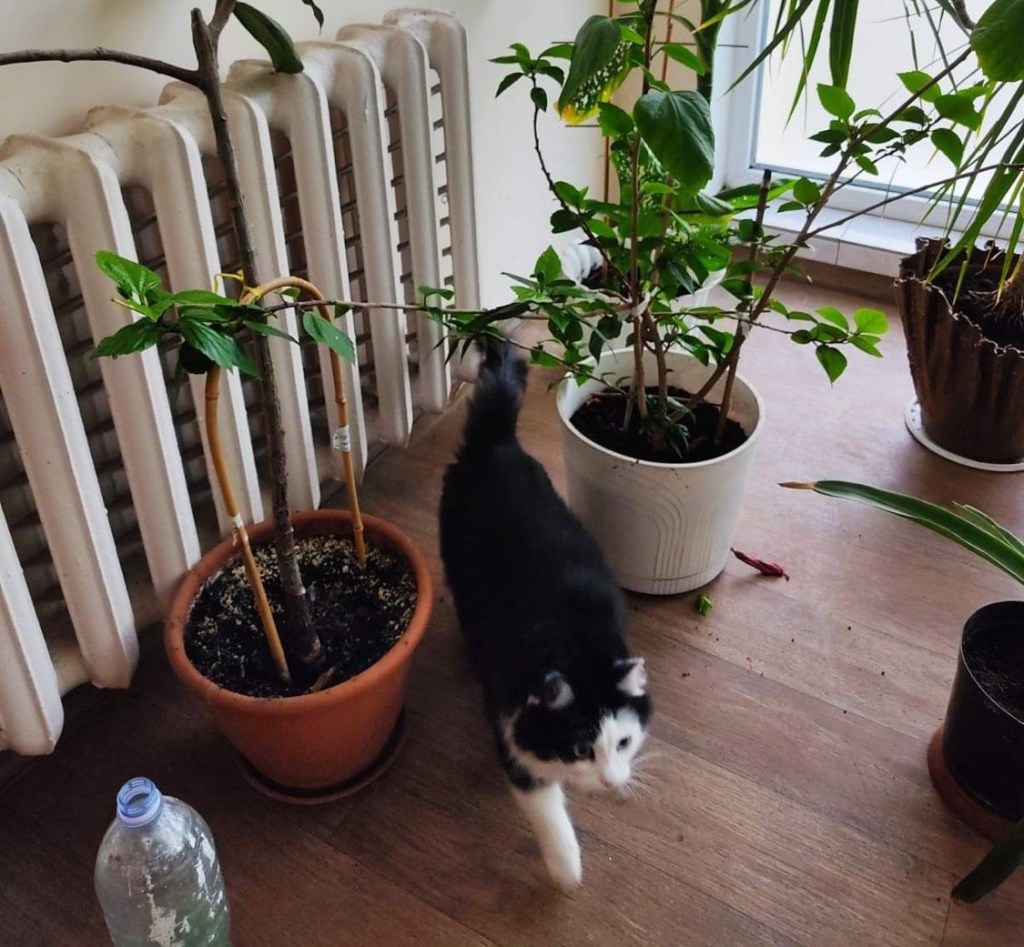 One lady of the group, Lyudmyla, came earlier. Lyudmila is from Kharkiv and stays at the building of our Christian clinic and she loves taking care of the plants there, it brings her joy and at the same time is a recovering therapy for her. Her cat Marusya lives with her there.