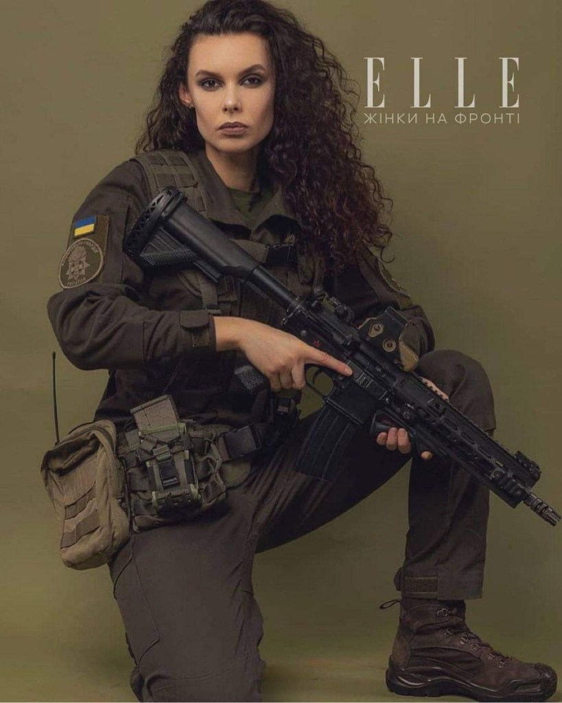 Photos of Ukrainian women-soldiers who fight for their country. French fashion magazine Elle published their photos.
