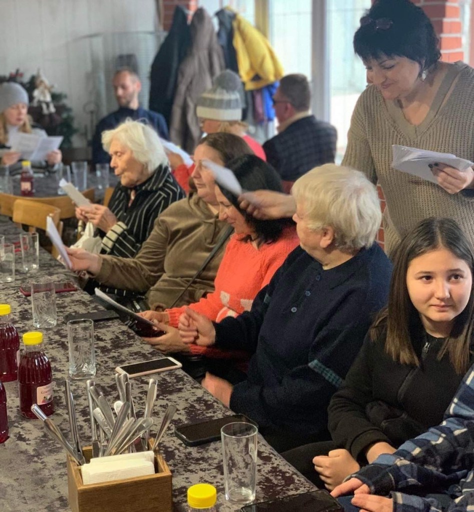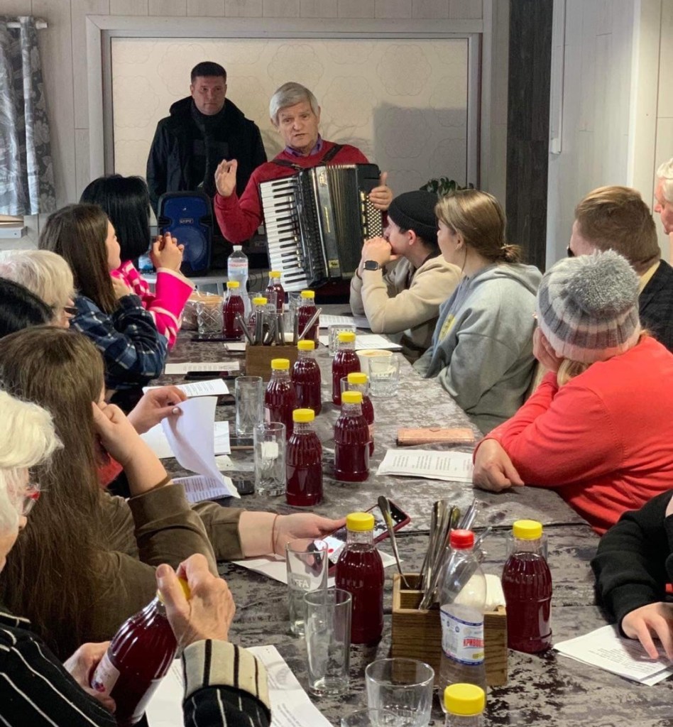 From Lyuda (Day 319): Dear brothers and sisters, Yesterday we had a nice completion of a Christmas season. As we gathered with our group of refugees in the café a local folk musicians came to play for us. It was such a joy to sing Christmas carols and Ukrainian folk songs. There are many carols very joyful and happy proclaiming the new era that came with the birth of Savior who was born from the virgin. In the old times these carols were widely performed all over Ukraine.