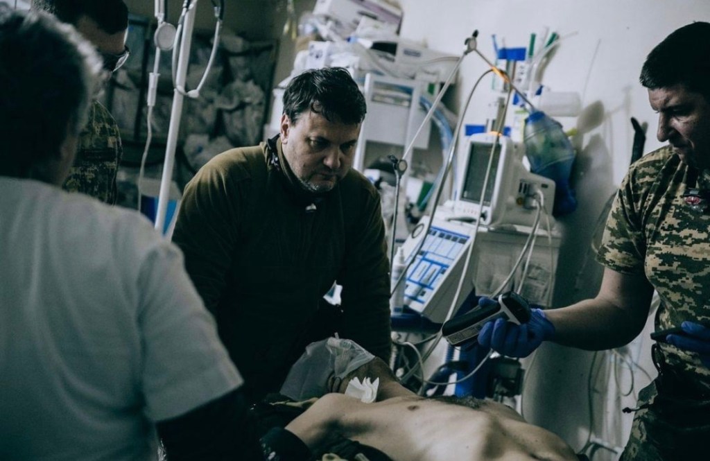 This is a so-called stabilization point – professional doctors work tirelessly on the wounded soldiers and bring them back from the brink of death. “From 50 to 100 wounded per day”, says the surgeon.