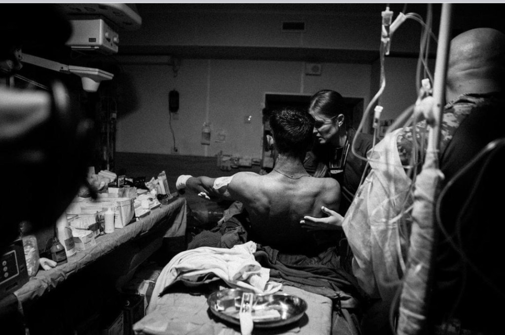 Ukrainian photographer Julia Kochetova covering the work of combat medics of the 93rd Kholodny Yar Separate Mechanized Brigade, Hospitaliery and the Pyrohov First Volunteer Mobile Hospital.