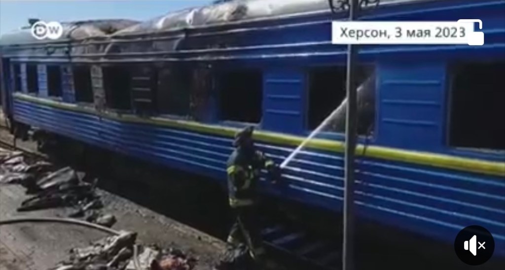 From Maia Mikhaluk in Kyiv (434th day): The video is from May 3rd attack on Kherson. Supermarket, construction materials store, gas station, train station… 23 people were killed, many injured.