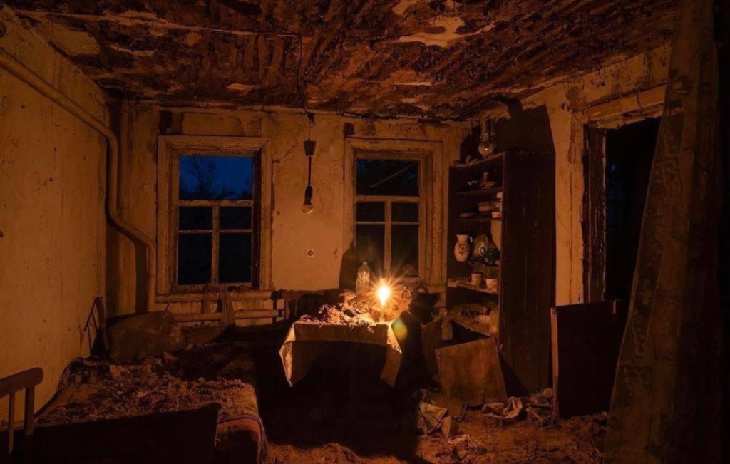 Pavlo Dorohoi, a photographer from Kharkiv, visited a destroyed Dovhenke village and lit up the destroyed houses as a symbol of hope. He says, “By lighting the lights in these houses, I wanted to give them hope that one day, life will return to them again. Hope that someday, a song and a child’s laughter will be heard within these walls again. I hope that someday there will be people inside these walls again. By lighting candles, I wanted to remember all those who died during this time. All those who had to leave their homes. All those who still cannot return home. All those who have nowhere to return to. By lighting the candles, I wanted the light to reappear in this place. I wanted it to dispel the darkness.