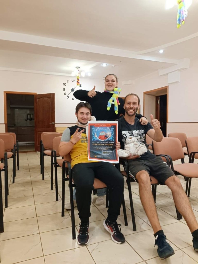 P.S. There are photos of our church that we made after the worship, the photo of Ivan and Lauren, the photos of Inna, Alex and Ilyusha (our youth group members) preparing Superbook program, on one of the photos they are holding the poster, designed by Lauren and the photos of the renovation of the building of the Refugee Center where you can see the second entrance from the back yard and some works inside.