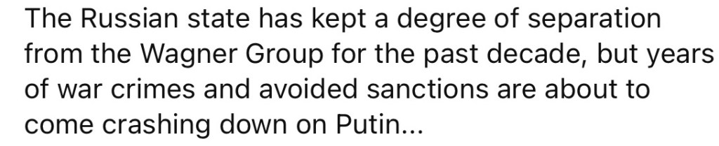 6/28/2023 – Putin Admits the Wagner Group is an Arm of the Russian State (video)