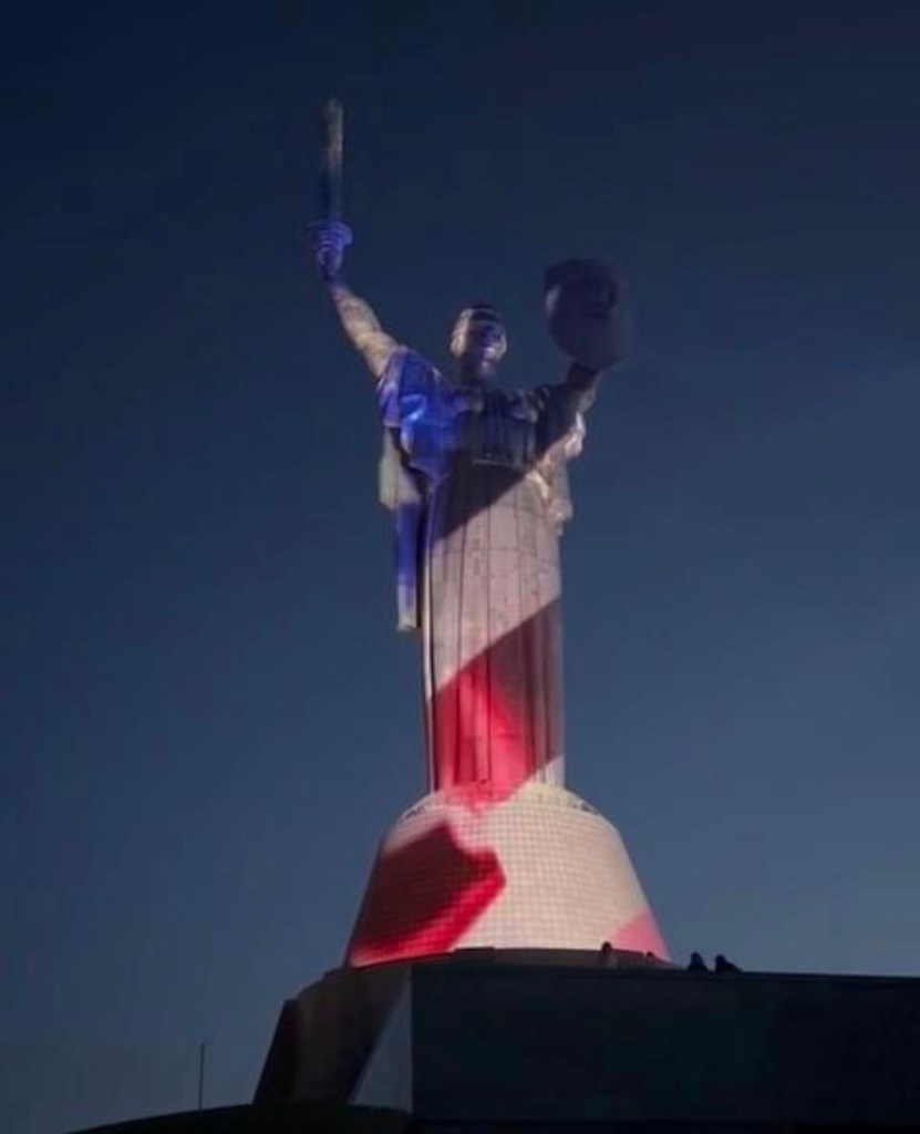 From Euromaiden Press: The Motherland monument in Kyiv illuminated with the colors of the American flag on the evening of the 4th of July