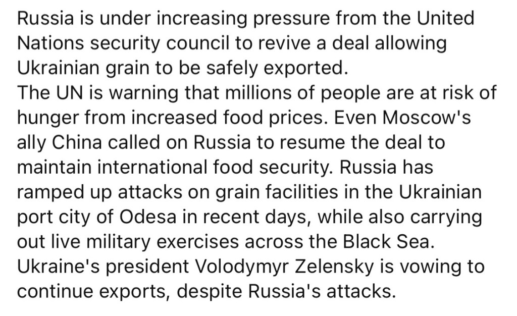 7/22/2023 – Putin under UN pressure as Russia ramps up attacks on grain ports