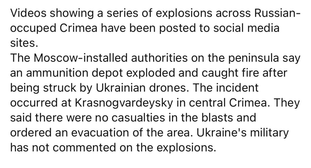 7/22/2023 – Ukrainian drones strike ammunitions depot in Crimea