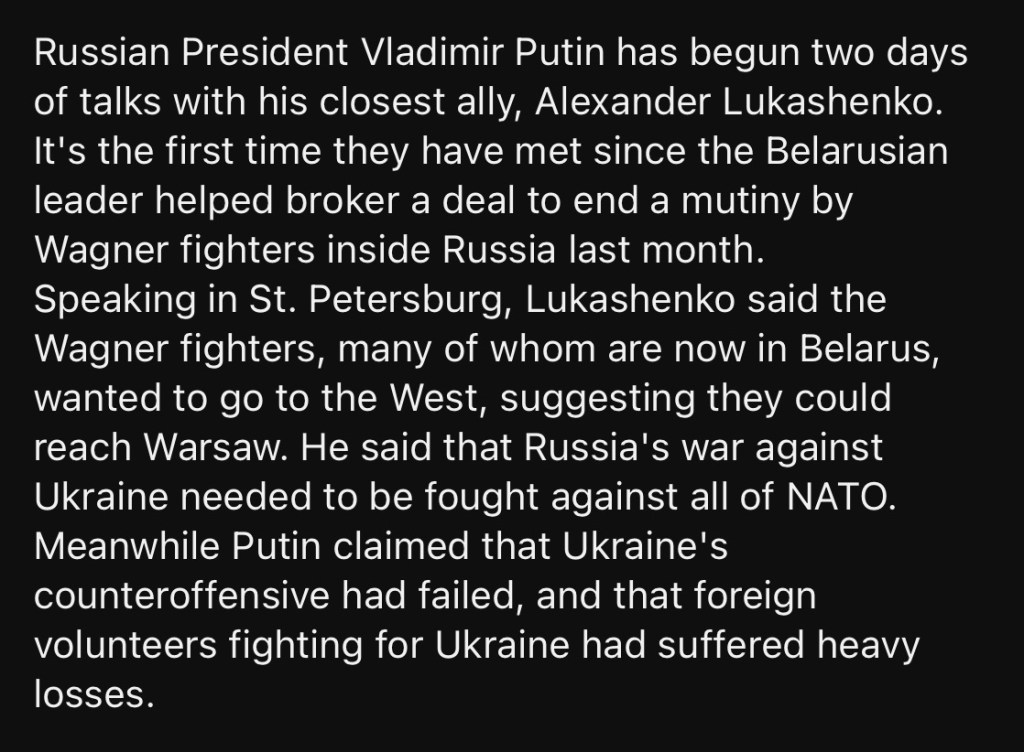 7/24/2023 – Lukasheko: Wagner wants to invade Poland, Putin: Ukraine counteroffensive a bust