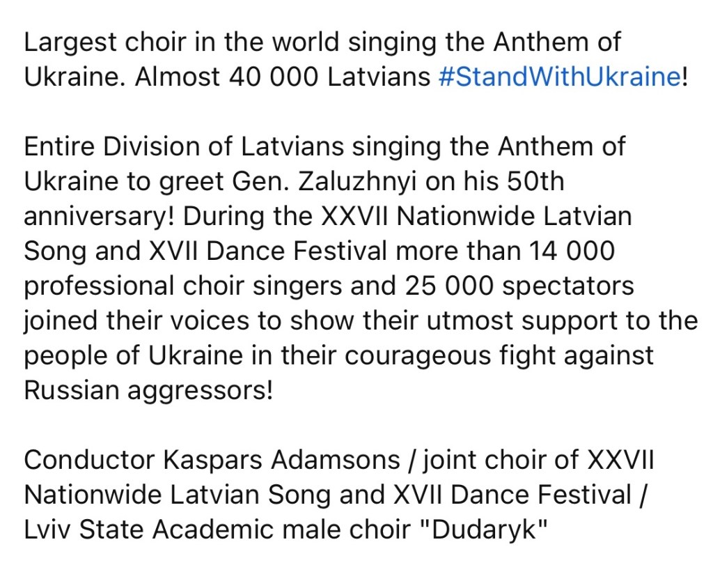 8/4/2023 – Largest choir in the world, singing the anthem of Ukraine