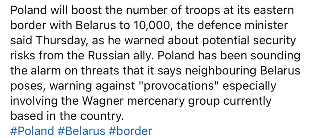 8/10/2023 – Poland says to boost troops level to 10,000 at Belarus border