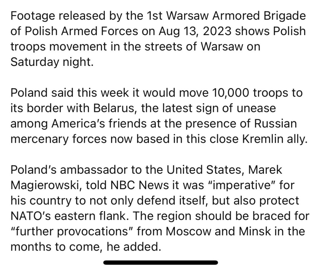 8/14/2023 – Polish troops move to Belarus border in a show of force against Wagner