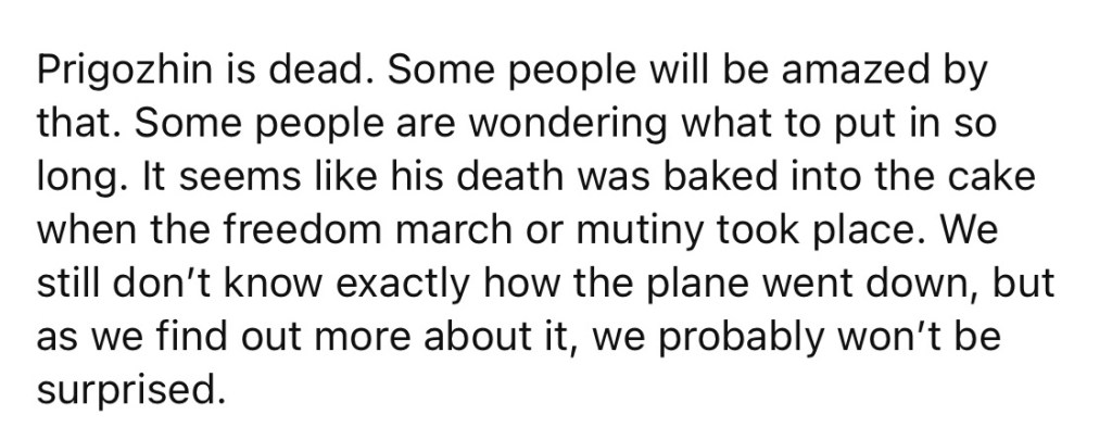 8/24/2023 – 🇺🇦Prigozhin is dead. Here are my conclusions