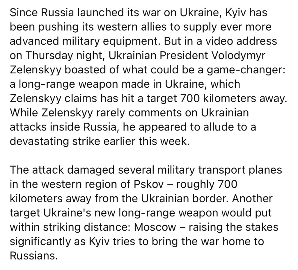 9/1/2023 – Kyiv – Ukrainian-made weapon hit target 700km away