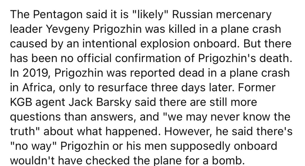 9/2/2023 – Ex-KGB agent: ‘No way’ Prigozhin wouldn’t have checked plane for bomb