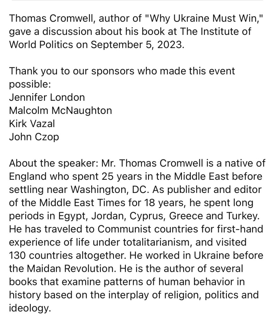 9/23/2023 – Why Ukraine Must Win, with Thomas Cromwell