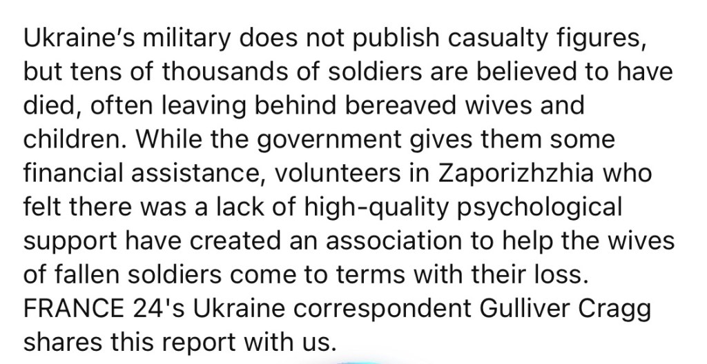 9/25/2023 – In Zaporizhzhia, volunteer therapist help Ukraine’s new widows process their loss