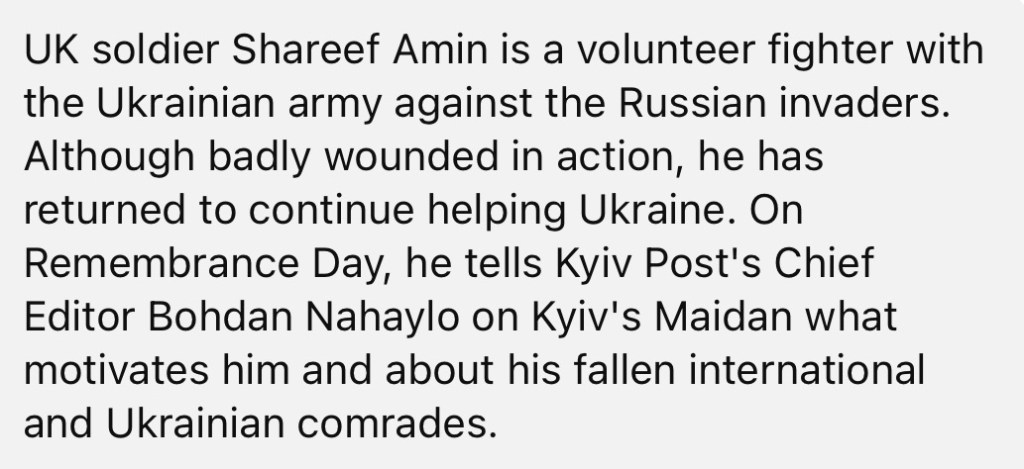 11/1/2023 – UK soldier fighting for Ukraine remembers on Kyiv’s Maidan his fallen comrades