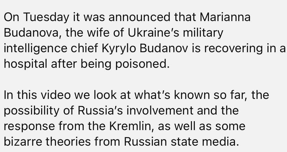 11/30/2023 – EXPLAINED: Ukraine Spy Chief Wife Poisoned – Everything We Know So Far