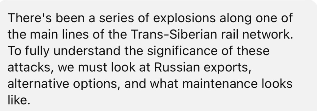 12/7/2023 – Economic Warfare in Siberia: Destroying Rail Infrastructure