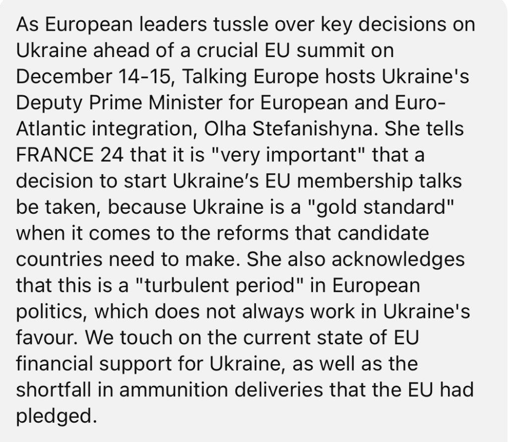 12/9/2023 – Ukraine is ‘gold standard’ for EU accession process: Ukrainian deputy PM