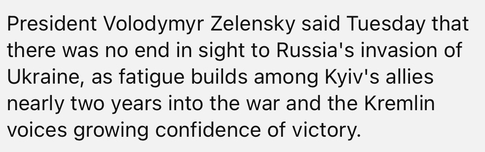 12/20/2023 – Ukraine’s President Zelensky says ‘no one knows’ when war will end