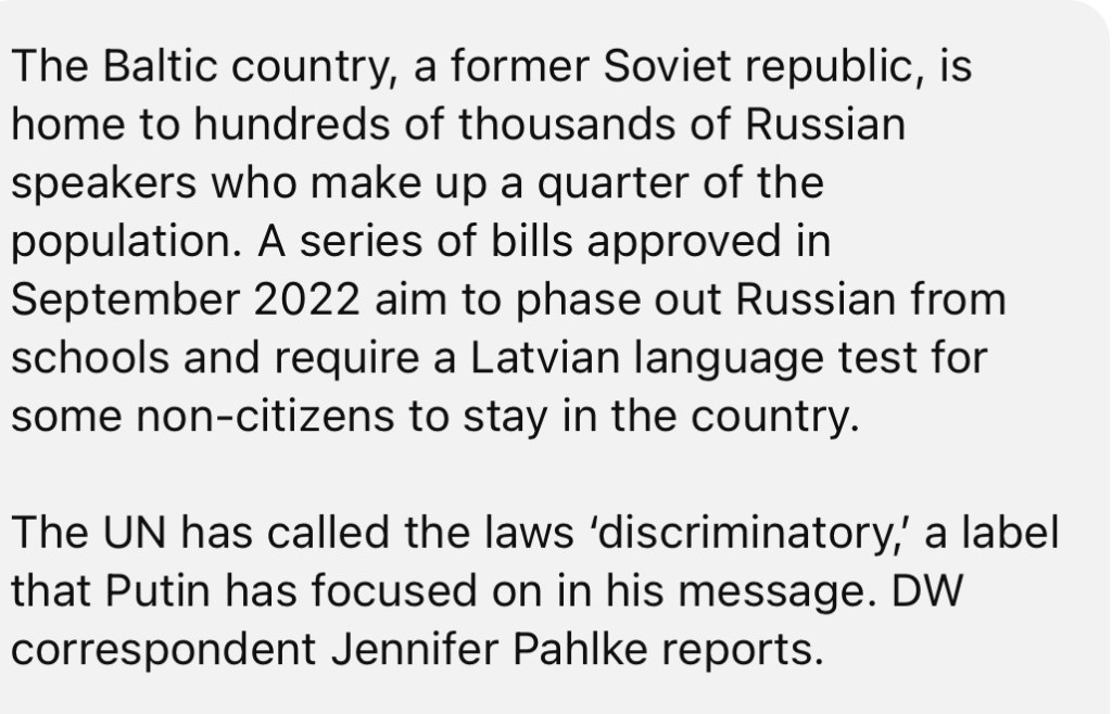 12/27/2023 – Putin threatens Latvia with “repercussions” over policy towards Russian speakers