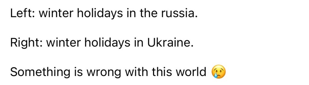 1/2/2024 – Left: winter holidays in russia. Right: winter holidays in Ukraine. (Video)
