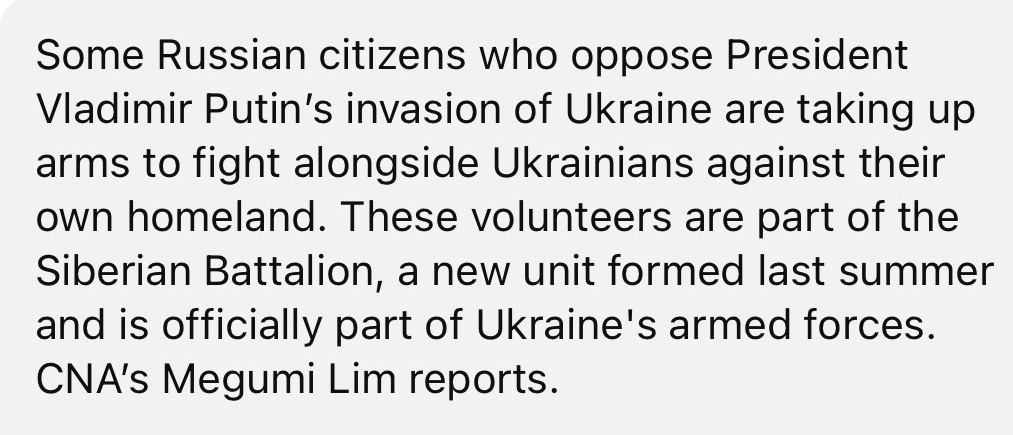1/26/2024 – Russian volunteers join Ukraine’s Siberian battalion to fight against Putin’s troops