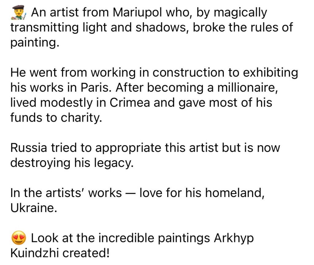 1/29/2024 – An Artist from Mariupol Who, by Magically Transmitting Light and Shadows, Broke the Rules of Painting