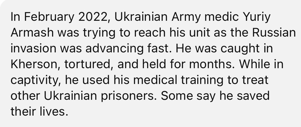 1/31/2024 – Ukrainian Medic Tortured By Russians Credited With Saving Lives Of Other Prisoners