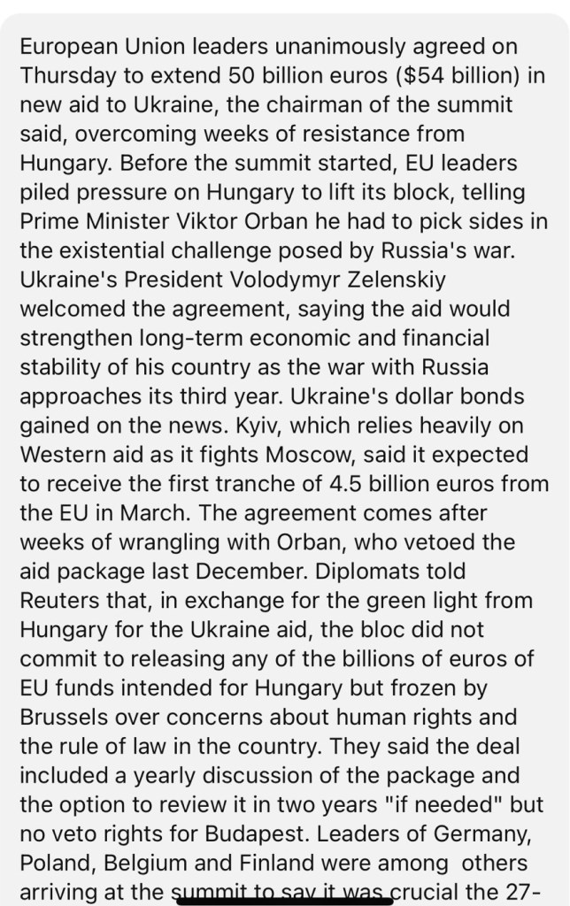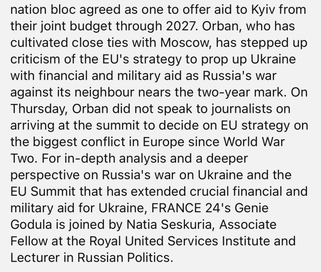 2/1/2024 – Russia’s war on Ukraine a ‘huge issue’ for EU as Putin‘s ambitions are much ‘more far reaching’