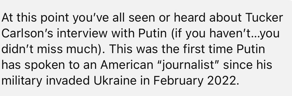 2/13/2024 – Putin‘s Puppet Show feat. Tucker “The Propagandist”Carlson.