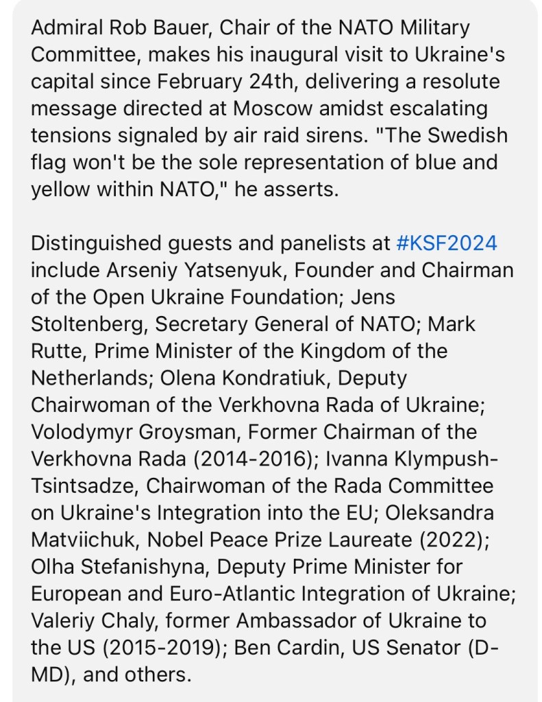 3/23/2024 – Kyiv Security Forum (#KSF2924): Ukraine’s Premiere International Platform on War, Peace, and Security