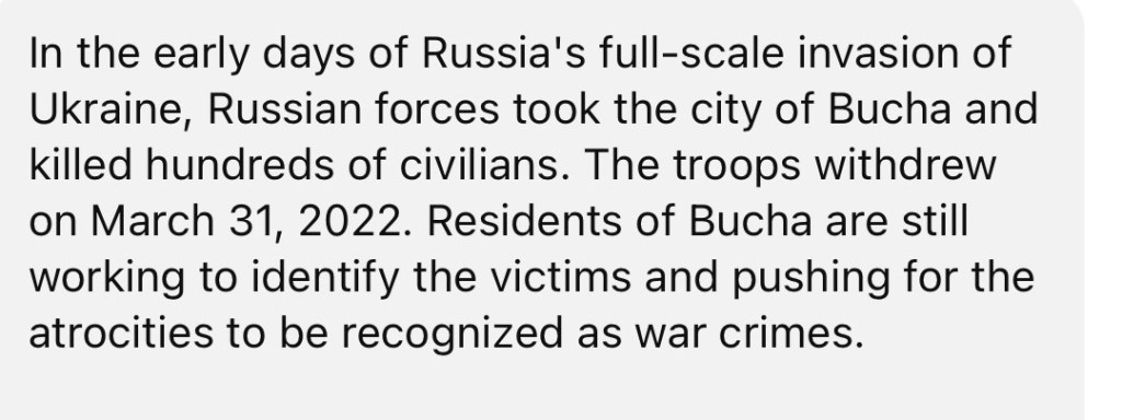 4/1/2024 – Two Years Later, Massacre of Ukrainian Civilians in Bucha is ‘Impossible to Forget’