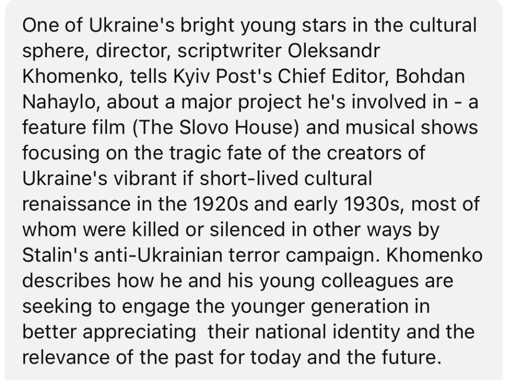 4/2/2024 – Ukraine has great Young Talents – Director, Songwriter, Oleksandr Khomenko is One of Them