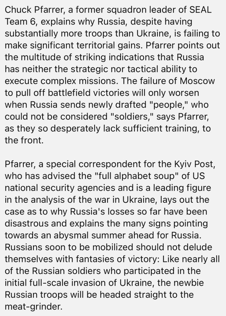 One response to “4/6/2024 – New staggering losses and increasing mayhem are rocking the Russian Army”