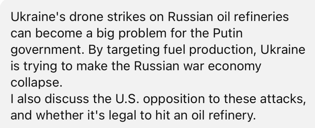 4/15/2024 – Ukraine strategic bombing of Russian oil refineries