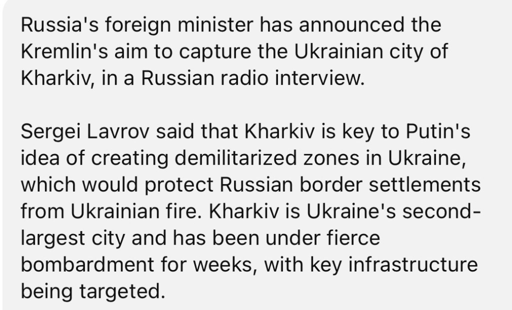 4/22/2024 — Russia Lavrov says capturing Kharkiv key to Kremlin’s plan