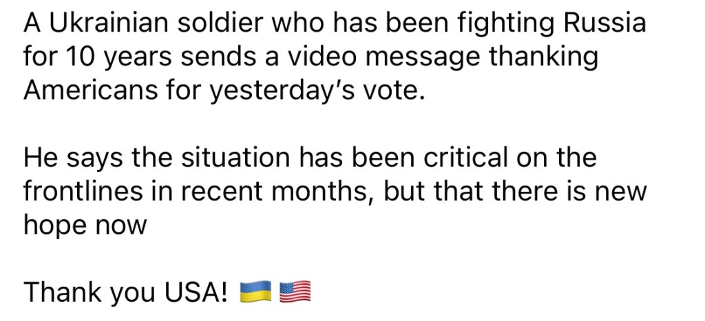 4/22/2024 – Ukrainian Soldier Thanks Americans
